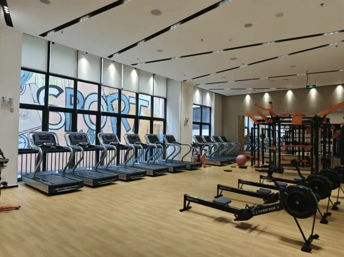 The gym features dedicated cardio and strength training zones, helping students stay active beyond their studies.