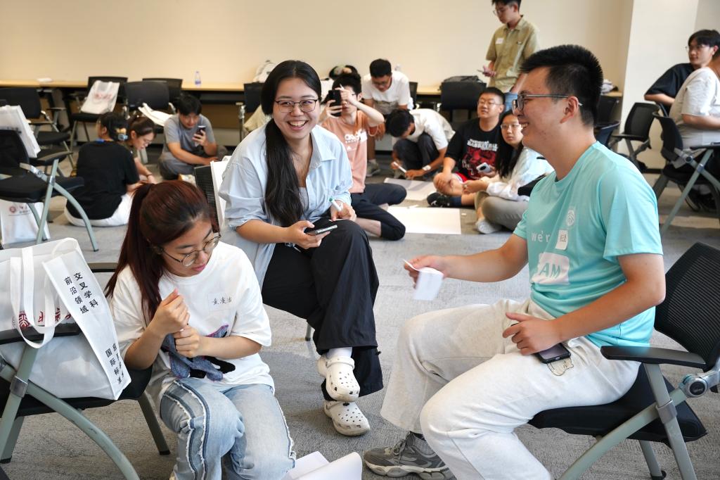 The session then moved to deeper exchanges. In pairs, students discussed questions from the cards they had drawn earlier, which were tailored to academic life and personal reflections. These prompts encouraged sharing genuine attitudes, experiences, and even uncertainties. Through attentive listening and sincere responses, students not only exchanged stories and perspectives but also quietly built trust and resonance—transforming surface-level greetings into authentic understanding and empathy.