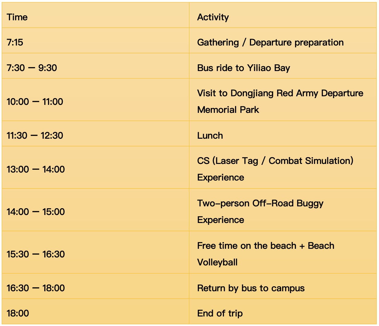 9. Since the outing involves coordination with a travel agency, please ensure you are able to attend on the scheduled day. If an emergency arises, notify the event coordinator at least one day in advance. Any loss caused by unexcused absence shall be borne by the individual.