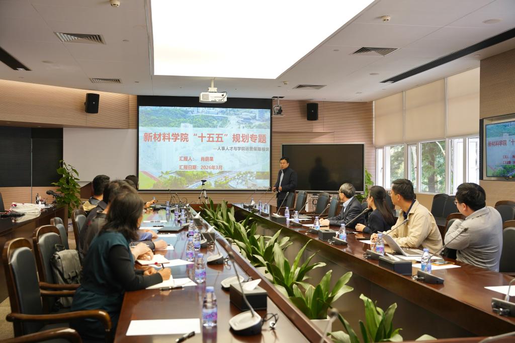 2026年3月6日,北京大学新材料学院在H214会议室召开“十五五”规划专题月系列研讨会。本次会议聚焦“人事人才与学院运营保障”主题,由副院长肖荫果作专题汇报。学院领导班子成员及教师代表共20余人出席。