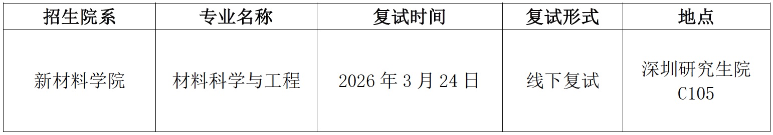 北京大学深圳研究生院新材料学院研究生招生工作坚持“公开、公平、公正”的基本原则,按需招生,德智体全面衡量,择优录取,宁缺毋滥。现将我院2026年博士研究生招生复试的相关工作说明如下: