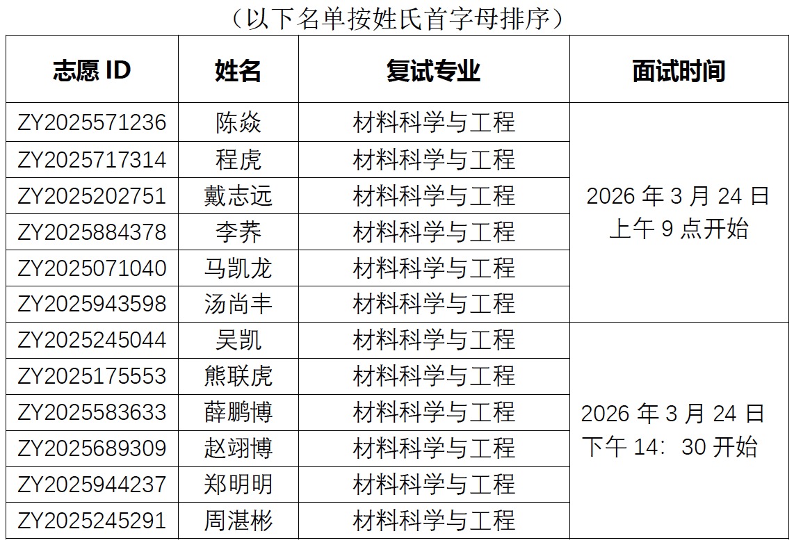 新材料学院2026年“申请考核制”博士研究生招生复试名单