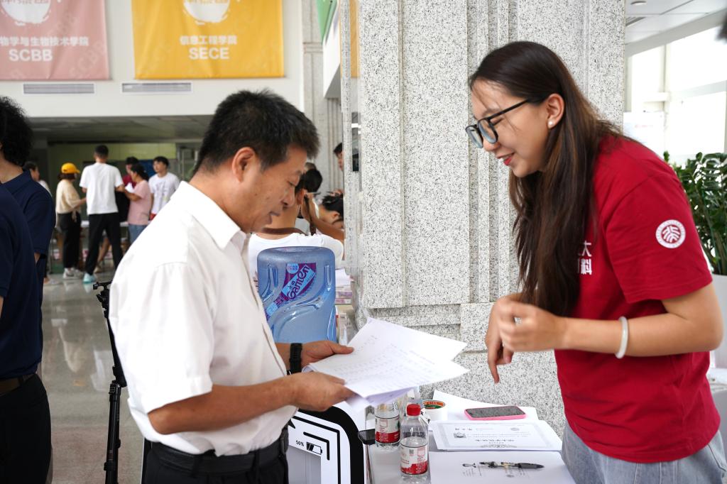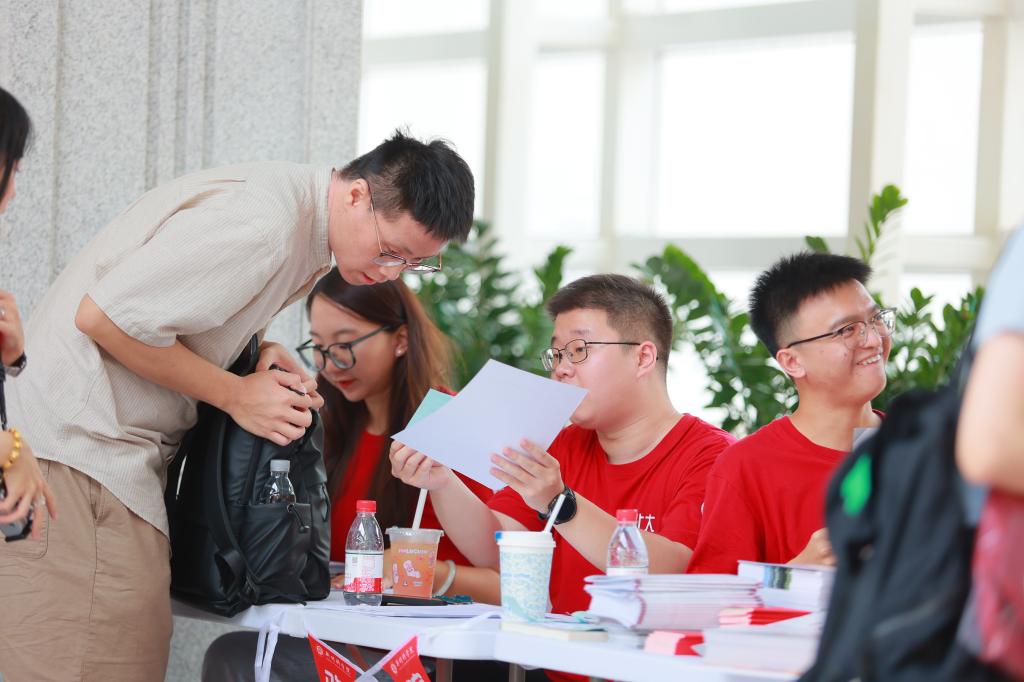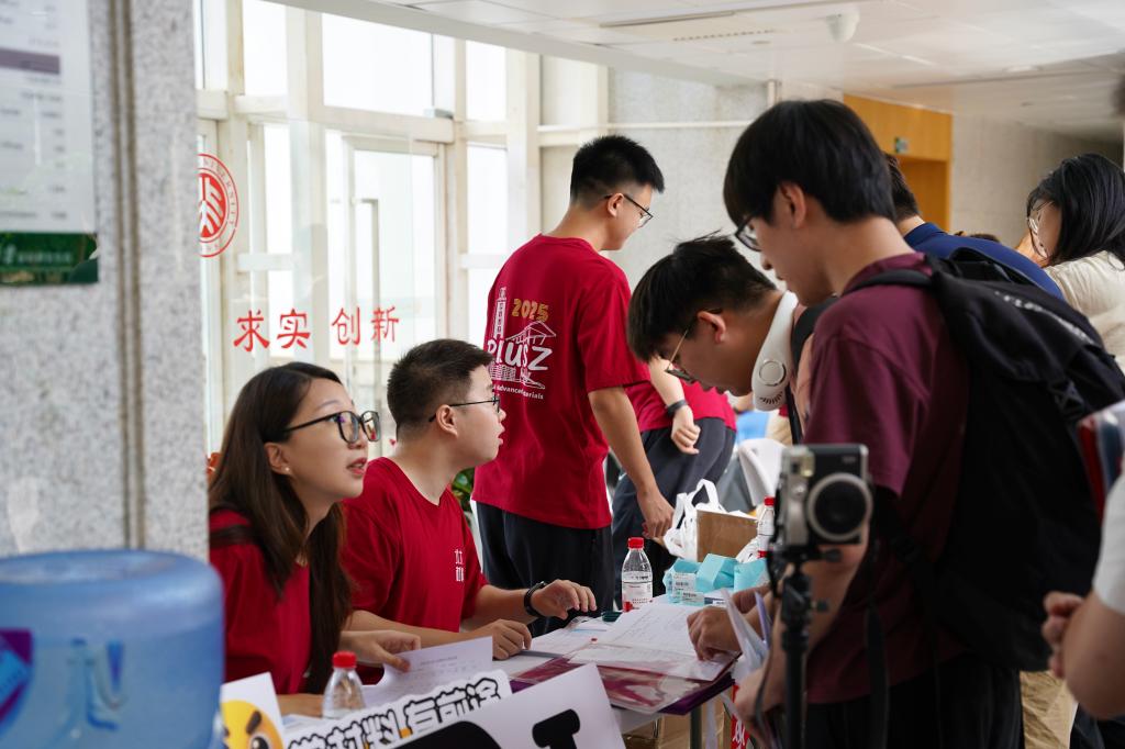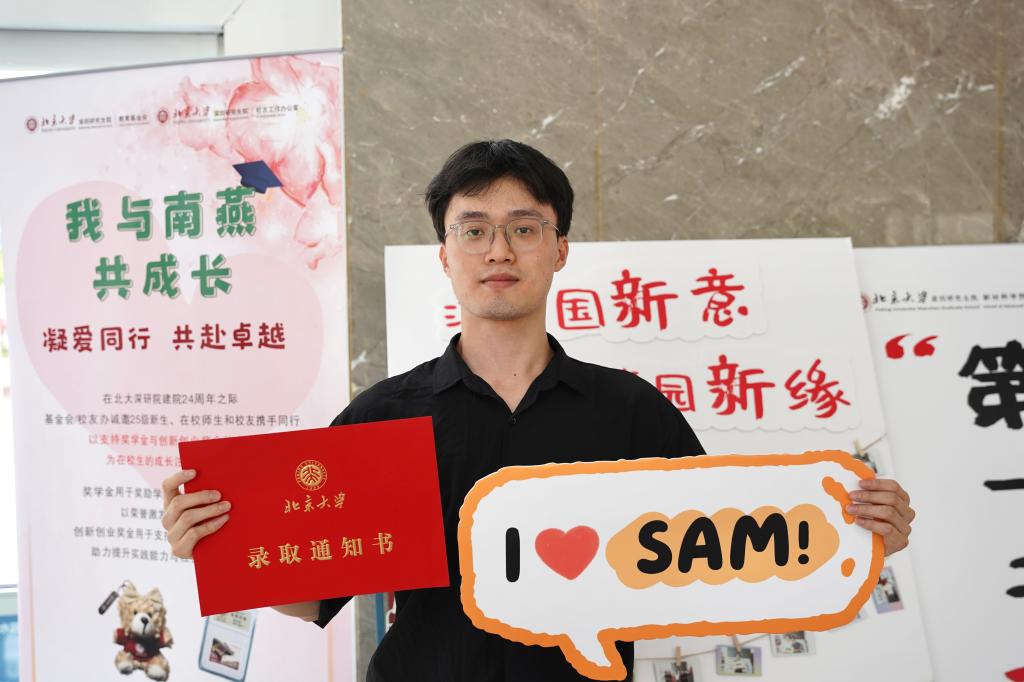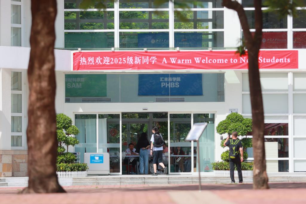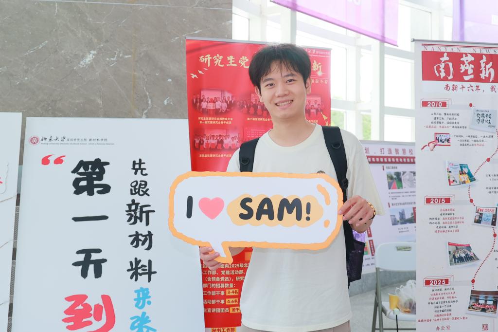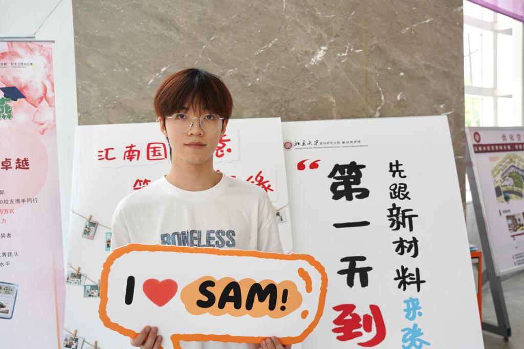 孙同学:八月深圳的夏日湿热未消,北大深研院的林荫道间满是暖意。走近报到点,“a warm welcome...” 的红色横幅格外醒目,字里行间的热情扑面而来。我攥着报到材料,心里还藏着“小 i 人”特有的羞涩,老师温和的一句“欢迎来新材料学院!”瞬间融化了我紧绷的情绪。身着志愿服的学长学姐们也立刻围过来,悉心讲解报到流程,细碎的关怀里满是真诚,原本以为会繁琐的报到流程,没一会儿就顺利完成了。前往实验办公大楼,走廊里的科研成果展牌最先吸引了我的目光 ,一项项成果带着 “北大科研优秀” 的印记,让人忍不住放慢脚步。师生讨论实验的身影、实验室仪器的低鸣,那种专注又鲜活的科研氛围,让我胸口涌起一阵强烈的自豪感,也更期待自己未来在这里的日子。